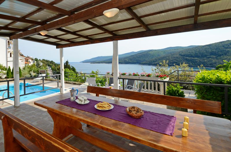 Villa Iviša is situated in the center of Rabac, the pearl of the Istrian peninsula east coast. The spacious terrace, gazebo, outdoor kitchen and swimming pool, along with the stunning panoramic view of the entire bay and the Kvarner Bay islands, makes it an ideal place to spend your holidays. At about 200 m there's a grocery store, a 2-minute walk separates you from the downtown and a 10-minute walk from the nearest beach. Nearby there are also walking and bicycle trails, tennis and paintball courts. Whether you want to spend a peaceful, relaxing or active holiday, Villa Iviša offers you a perfect place to enjoy the combination of sun, sea and pleasant atmosphere.